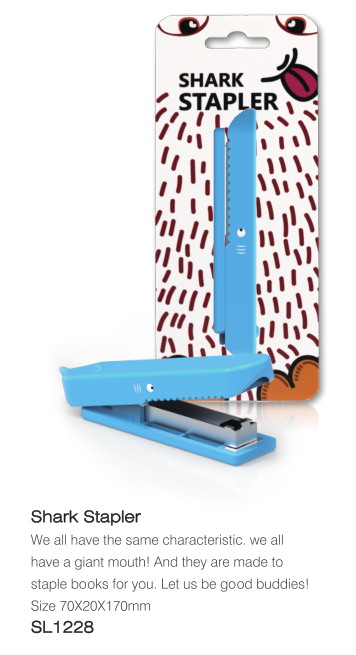 卡通(tōng)動物訂書(shū)機,有(yǒu)鲨魚、北極熊、鳄魚、河(hé)馬4種。